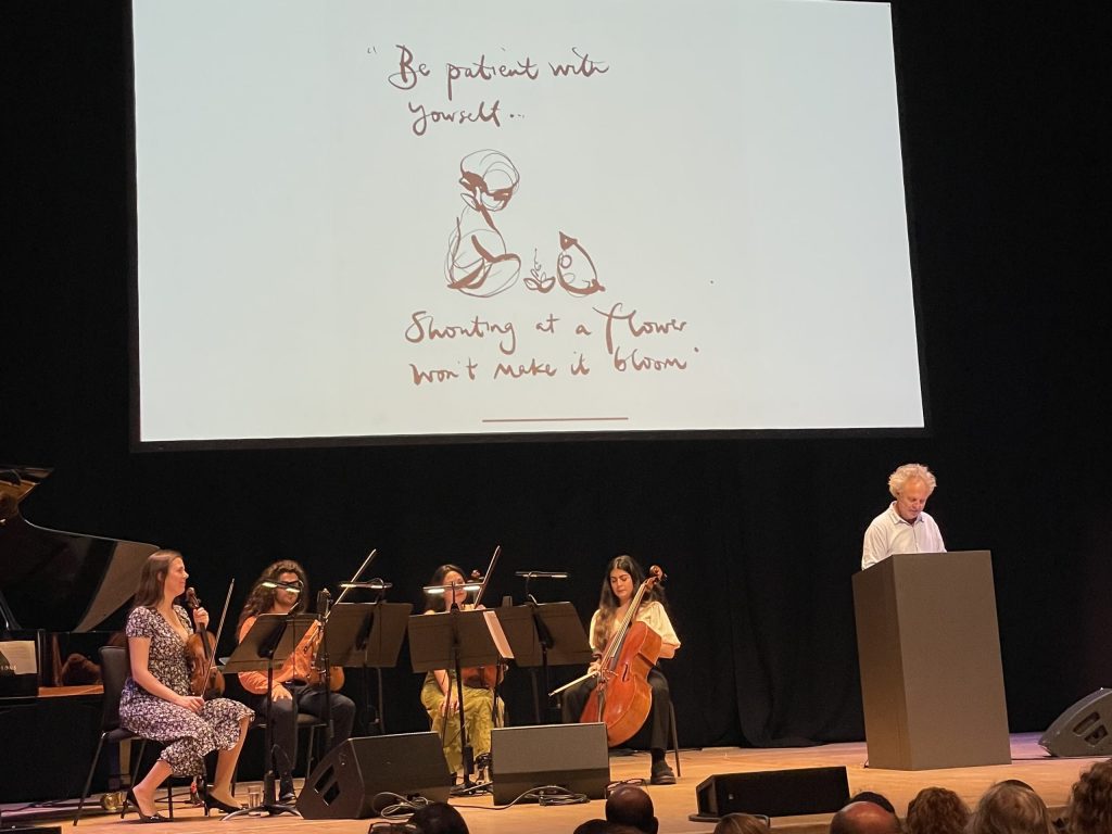 Isobel ‘Iso’ Waller-Bridge accompanied Mackesy on the stage, alongside a quartet, which created a conversational alchemy to Mackesy’s classically styled melodies.