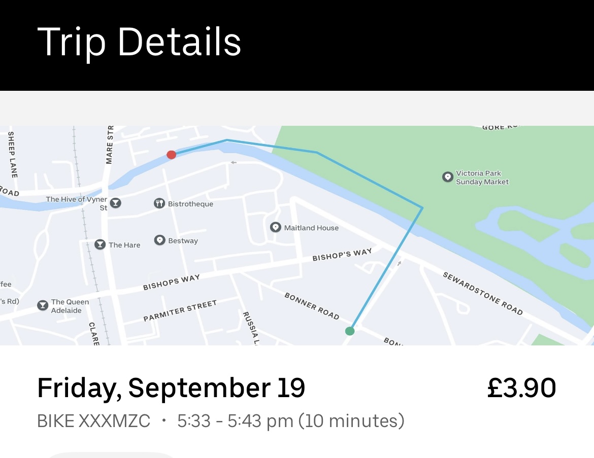 In September, he was walking back to his friend’s flat in Angel after going to a flat viewing in Bethnal Green, when he decided to rent a Lime Bike due to the surprisingly good weather, and wanting to avoid the long walk home.