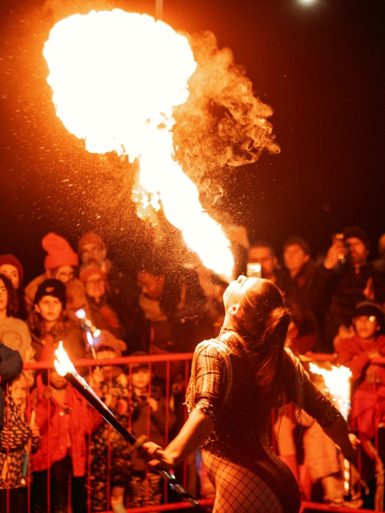 The fire performer, described by Fleur as ‘pretty cool’, features four times throughout the evening at 4.30pm, 5.30pm, 6.30pm and 7.30pm.